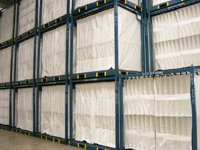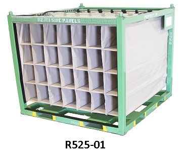 These racks are made of a steel frame fitted with a sewn bag assembly. Bags are made of high performance vinyl material. For class A surfaces, Tvyek and headliner fabric is used. For parts with sharp edges, HDPE is used. Foam padding is often used to secure parts in a certain orientation. Eisen manufactures grid, nested, and honey comb bags to achieve highest density of parts per rack. Collapsible racks are available for clients that have fleets travelling long distances. This reduces cost drastically on return trips. Contact your sales representative to review your packaging needs.
