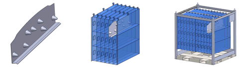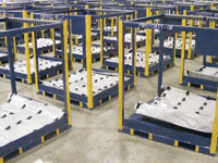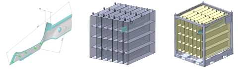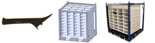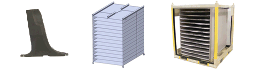 Sewn fabric dunnage is ideal for scratch sensitive parts. Advancements in technical textiles allow us to offer exceptionally strong and tear resistant fabrics. For Class A surfaces, we offer even higher grade multi-ply fabrics. Typical sewn dunnage results in much higher part density per container than any other type of packaging material. Finished dunnage is generally installed in a modular rack, container, or tote. For long hauls, use our collapsible containers with fabric dunnage to save on return freight cost. In most cases, freight savings alone can pay for the fleet.